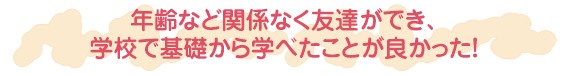 | 歯科助手の頃も、歯科医師の先生や、歯科衛生士さんから色々な事を教えて頂きましたが、学校で基礎から学べたことが良かったと思います。また、私はクラスの中で一番年上だったのですが、年齢など関係なく友達が出来た事に感謝しています。 国家試験の勉強も友達が支えになってくれたおかげで乗り越えられたと思います。今でも大切な思い出の1つです☆ |